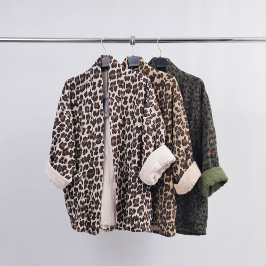 Protégez-vous du froid avec style grâce à cette veste matelassée au motif guépard TDM13322. Confectionnée...