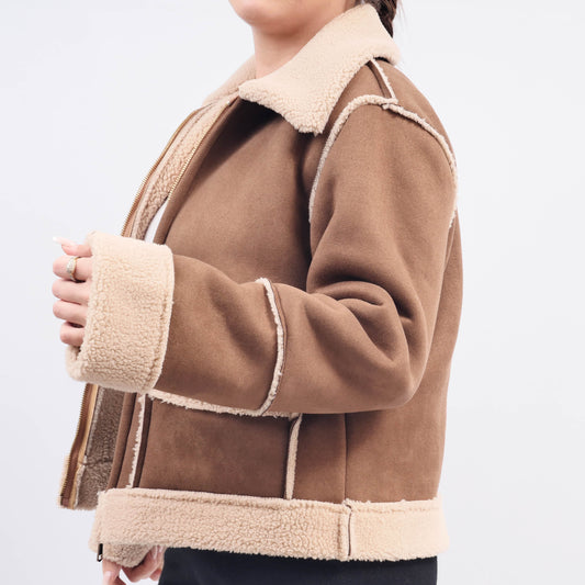 Une veste deux-en-un qui conjugue audace et praticité. D’un côté, un motif jacquard texturé marron...