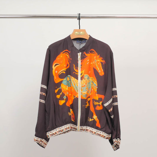 Affirmez votre style avec ce blouson à l'imprimé cheval spectaculaire, une pièce forte qui capte...