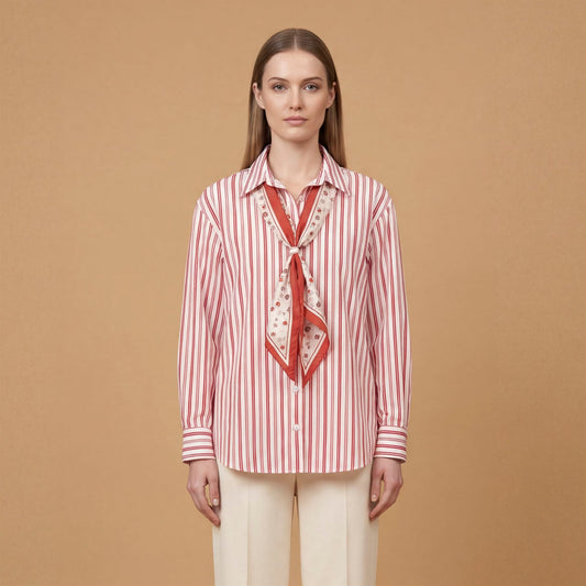 Chemise à rayures avec foulard noué au col – BCR02606-2