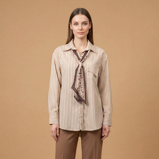 Chemise à rayures avec foulard noué au col – BCR02606-3