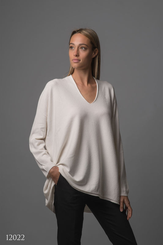Le confort rencontre l’élégance dans ce pull col V à la coupe oversize.Avec ses épaules...