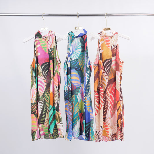 Cette robe à motif TDM09519 est faite de tissu léger et confortable, parfait pour l'été....