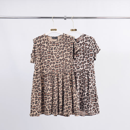 Cette robe en coton léger de style court est dotée d'un imprimé léopard tendance. Parfaite...