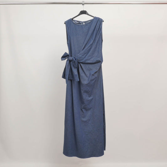 Robe longue nouée à la taille bleu indigo TDM27125-2