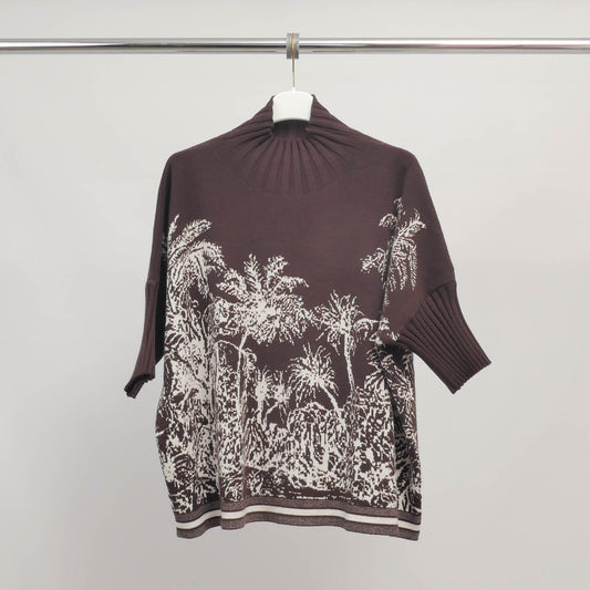 Pull col montant imprimé paysage tropical – ref MSJ76924