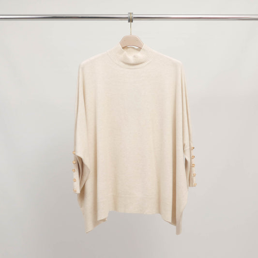 Pull col roulé large manches 3/4 à détails boutonnés – HY25079