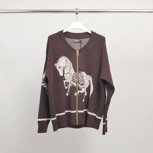 Gilet zippé motif cheval en maille douce – MSJ76921