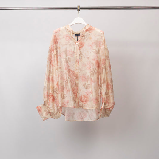 Chemise imprimée col froncé à lien et manches volantées – BCR02570