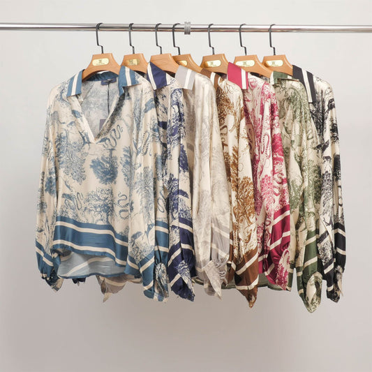 Chemise imprimée équestre oversize en viscose soie - KD7607VS-20