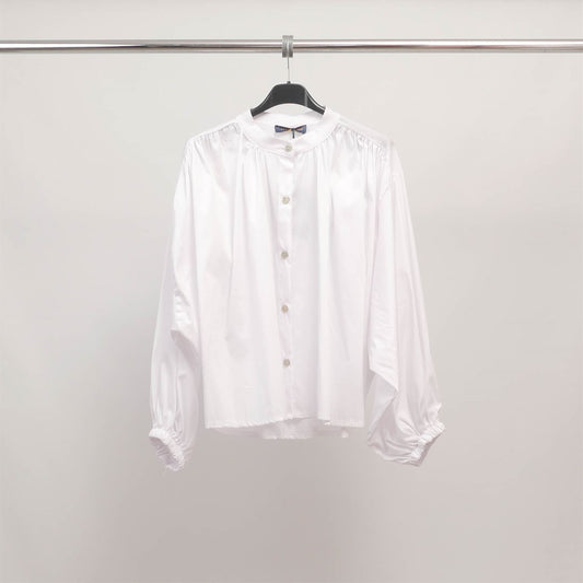 Blouse coton à manches bouffantes et détails plissés TDM37325