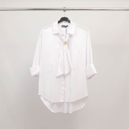 Un essentiel revisité avec élégance : cette chemise à nœud bijou apporte une touche précieuse...
