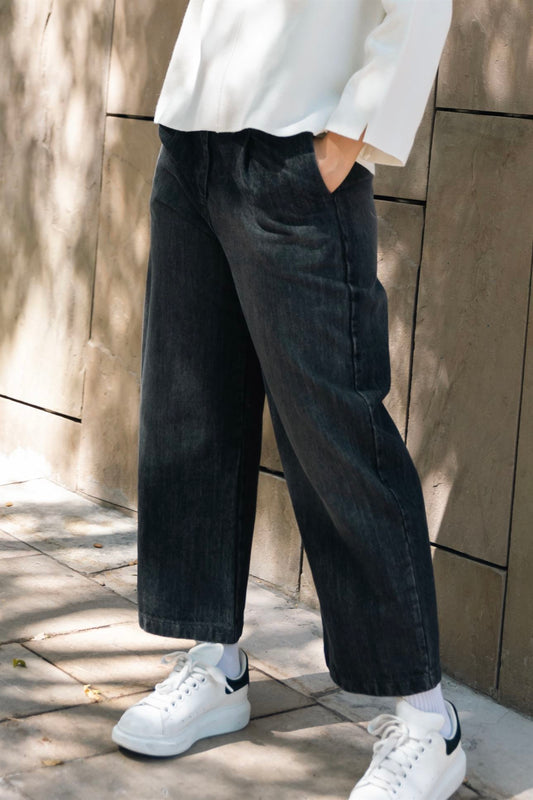 Alliant confort et style urbain, ce jean droit large à la teinte noire délavée est...