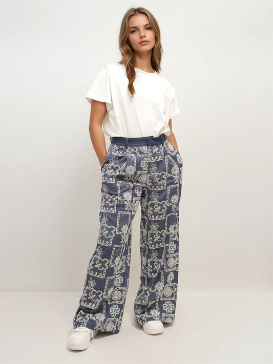 Ce pantalon fluide à coupe large allie confort et originalité avec son imprimé patchwork floral...