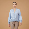 Button-down blouse with V-neck and ribbed edges – DB14003VS