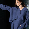 Textured V-neck button-down blouse – DB14637