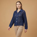 Its openwork texture subtly reveals the skin or top worn underneath, while offering ideal breathability. It stands out with its contrasting fabric shirt collar, button placket, and full cotton cuffs, giving it an elegant structure. Available in several bright or natural colors, it suits all styles.