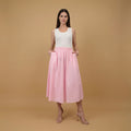 A summer wardrobe essential, reimagined with simplicity and elegance. This cotton midi skirt features an elasticated waistband for a comfortable fit and freedom of movement.
