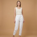 Its elasticated waist and slightly tapered leg offer a flattering and comfortable silhouette, while the fluid fabric ensures pleasant freedom of movement.