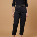 The perfect blend of comfort and style, these high-waisted trousers offer a fresh take on the chino with a touch of character. Featuring a slim, eyelet belt tied at the waist, they define the silhouette while highlighting femininity. Their slightly relaxed, straight cut and rolled-up cuffs create a casually chic look that's easy to wear every day. The soft, stretchy fabric ensures optimal freedom of movement without compromising on elegance. Wear them with a tucked-in shirt and loafers for a polished urban look, or with a white t-shirt and sneakers for a relaxed vibe.