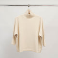A soft, structured sweater to get you through the season in style. This high-neck design features slightly batwing three-quarter length sleeves and wide ribbed knit cuffs, adding volume and a modern touch to the silhouette. Its straight, flowing cut makes it easy to wear every day, while ensuring optimal comfort. Lightweight yet warm, it layers easily under a coat or stands on its own with high-waisted trousers. Pair it with raw denim for a smart-casual look, or with a midi skirt for a more feminine style.