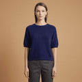 This short-sleeved, crew-neck sweater revisits knitwear in a light and enveloping version, ideal for mid-seasons.