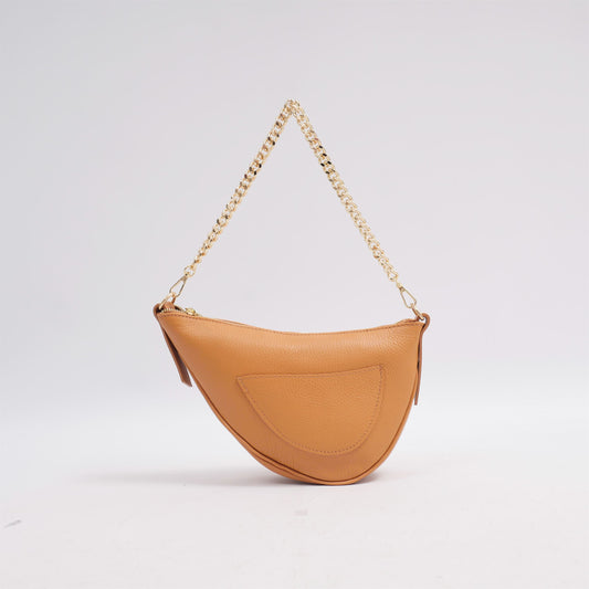 Sac baguette en cuir grainé avec bandoulière et anse chaîne
