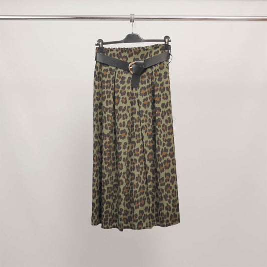Jupe midi plissée imprimé léopard avec ceinture TDM52123-9