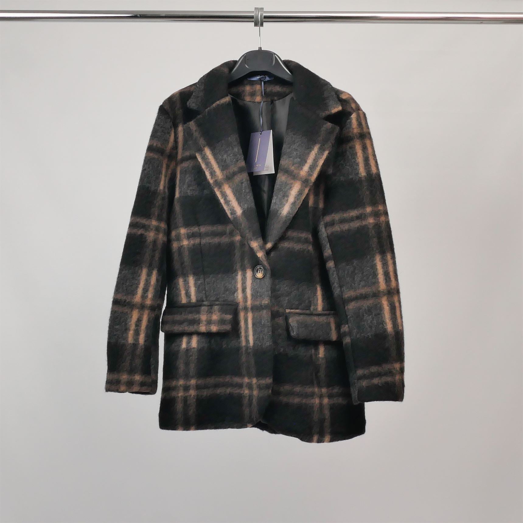Le blazer d’hiver idéal pour conjuguer élégance et confort au quotidien. Ce modèle en tissu brossé à carreaux se distingue par son allure structurée et son toucher doux. Doté d’un col tailleur classique, d’une fermeture un bouton et de poches à rabat bien définies, il revisite l’esprit tailoring dans une version chaude et contemporaine. La coupe droite affine la silhouette tout en laissant une liberté de mouvement agréable. À porter sur un col roulé et un pantalon cigarette pour une allure sophistiquée, ou en superposition sur un t-shirt et un jean pour une approche plus décontractée.