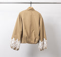 Ce modèle à la coupe ample et aux lignes épurées se distingue par ses manches longues terminées par de larges poignets en dentelle ajourée, qui apportent une touche délicate et inattendue. Doté d’une fermeture zippée sur le devant, d’un col rond façon bomber et de poches latérales pratiques, il mixe esprit utilitaire et détails ultra-féminins.