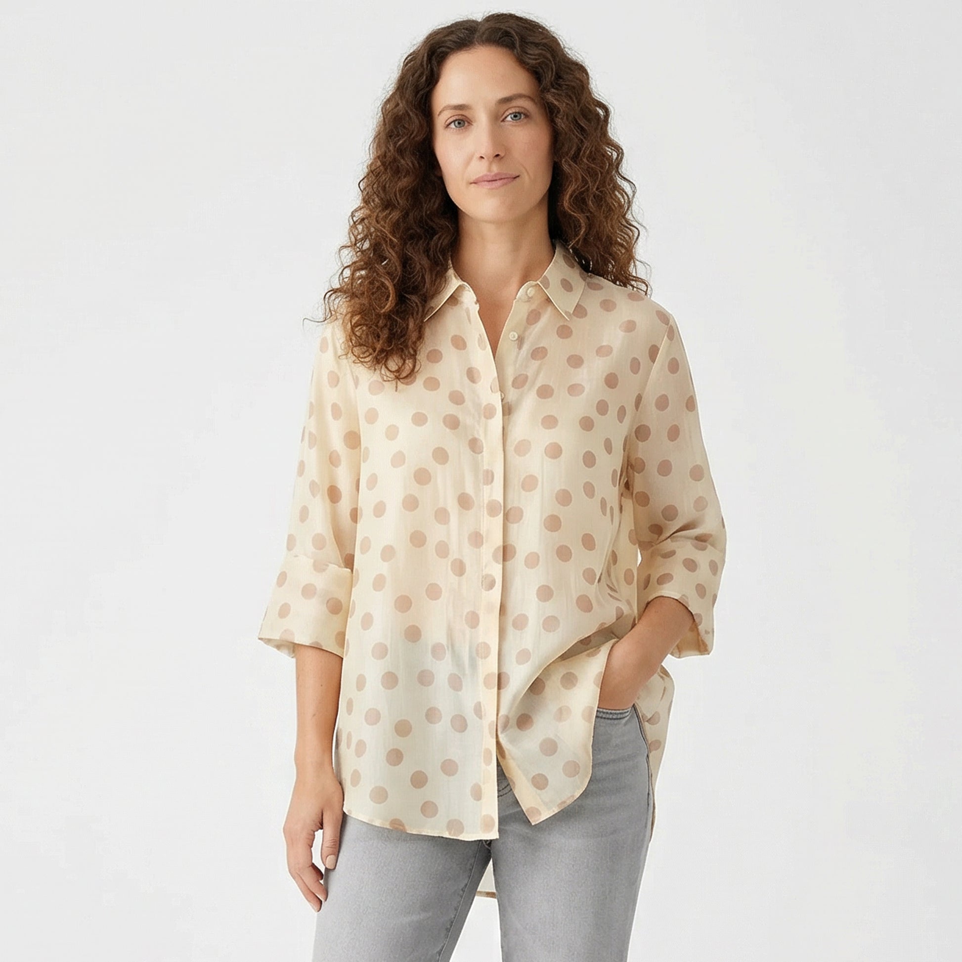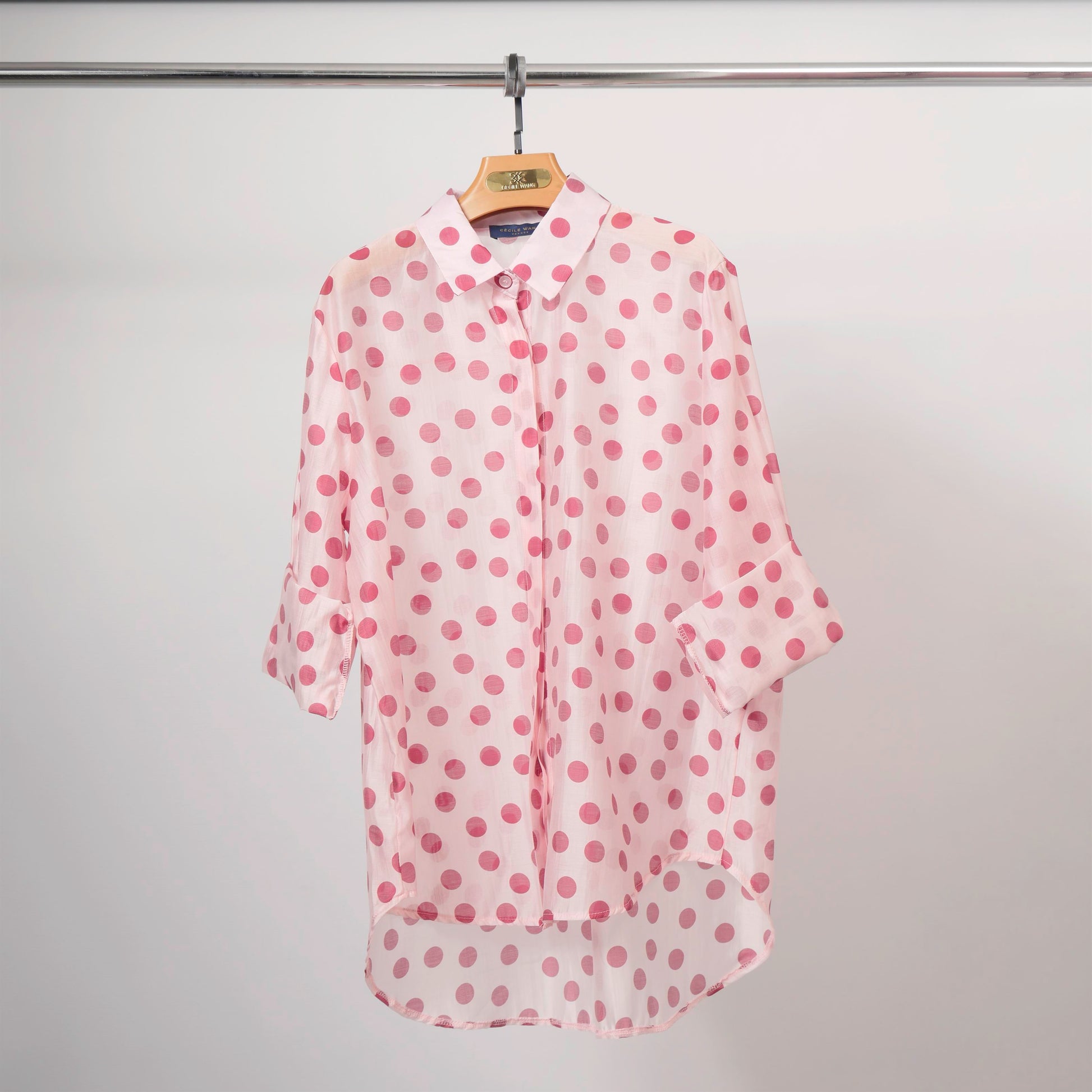 Un vent de légèreté souffle sur votre garde-robe avec cette chemise ample à pois au style résolument frais et moderne. Son imprimé polka dot iconique apporte une touche ludique, tandis que sa coupe oversize fluide assure un confort absolu tout au long de la journée.