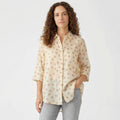 Dotée d’un col chemise classique et de manches 3/4 retroussables, elle joue sur les contrastes entre structure et décontraction. Le bas légèrement arrondi et plus long au dos affine la silhouette tout en assurant une belle liberté de mouvement.