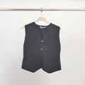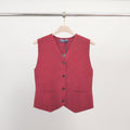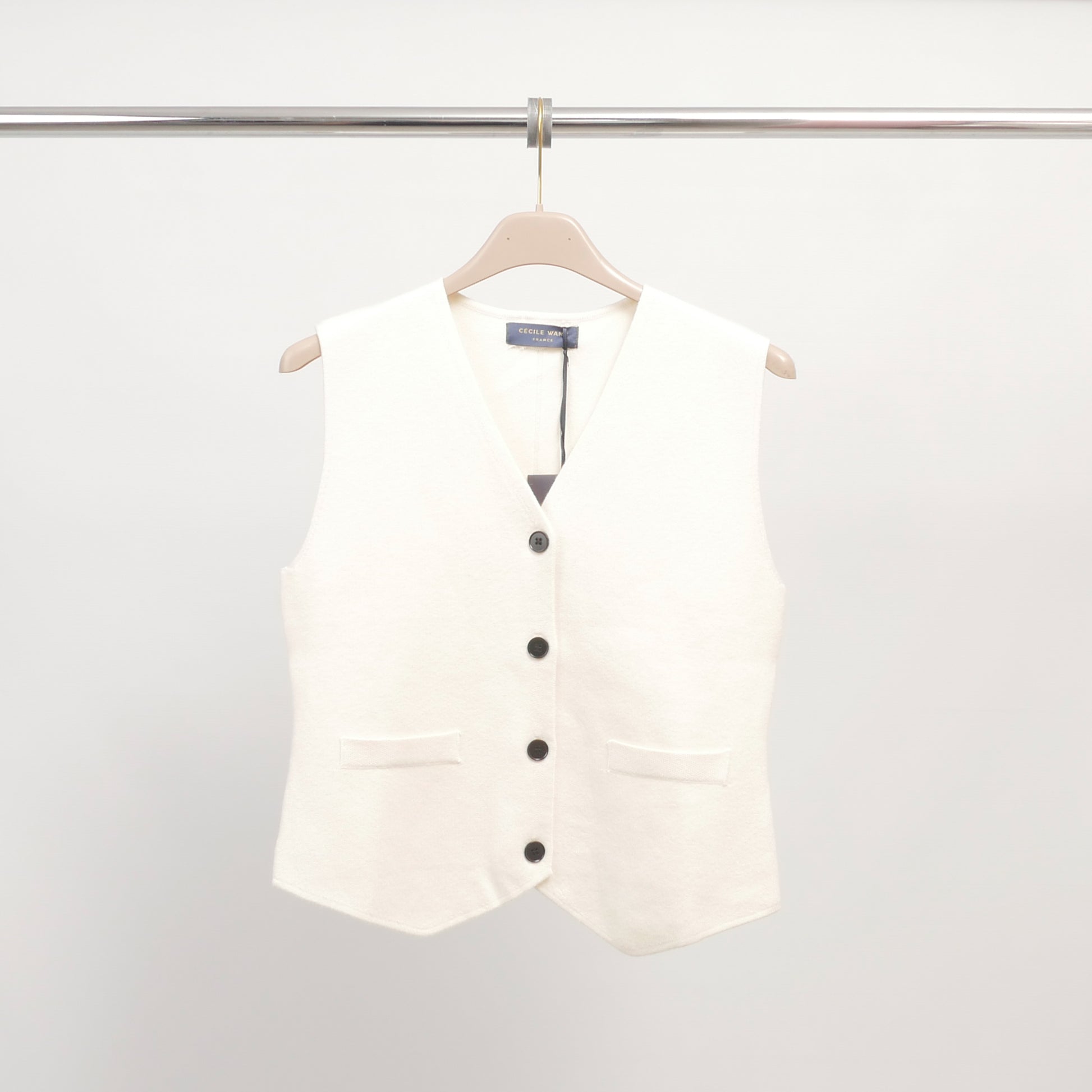 Doté d’une encolure en V et d’une fermeture à cinq boutons contrastants, ce gilet se distingue par ses poches passepoilées discrètes et son ourlet en pointe qui structure la silhouette. Sa maille fine et douce offre un confort optimal tout au long de la journée, tout en assurant une belle tenue.