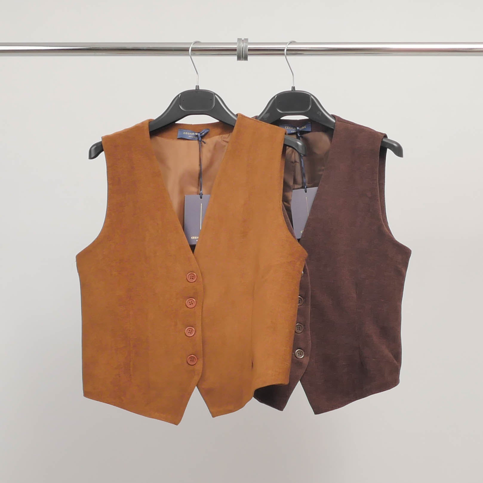 Gilet sans manches en maille chenille caramel ou chocolat – TDM35223-6