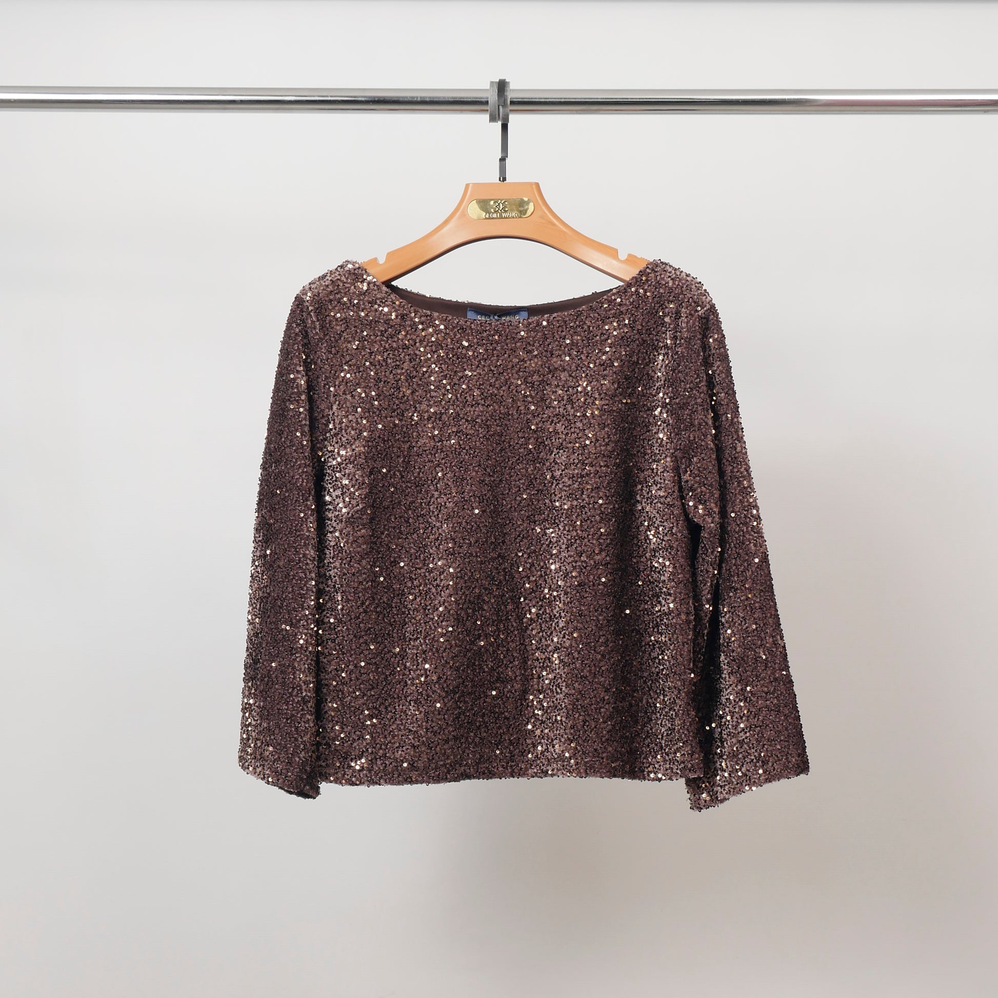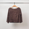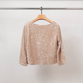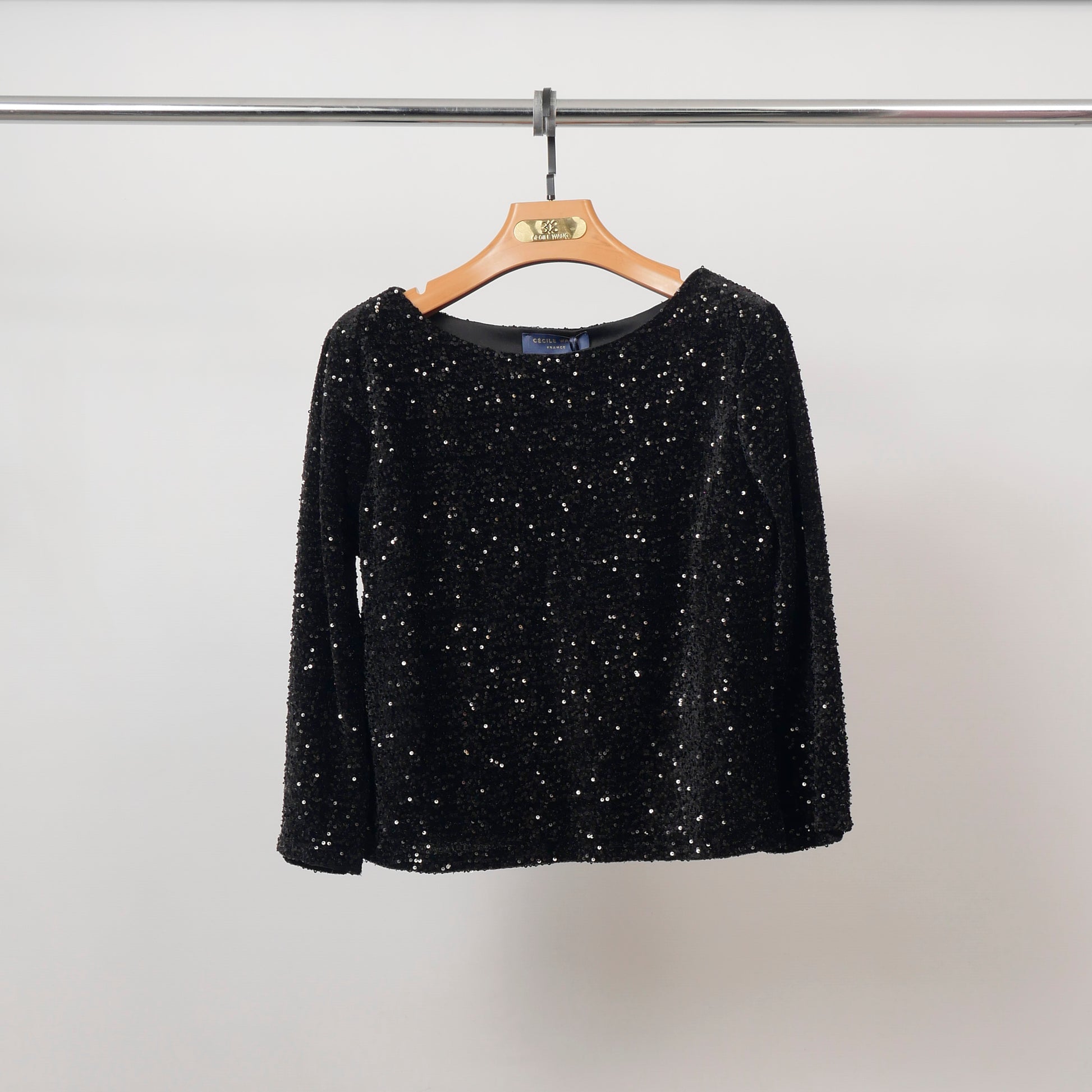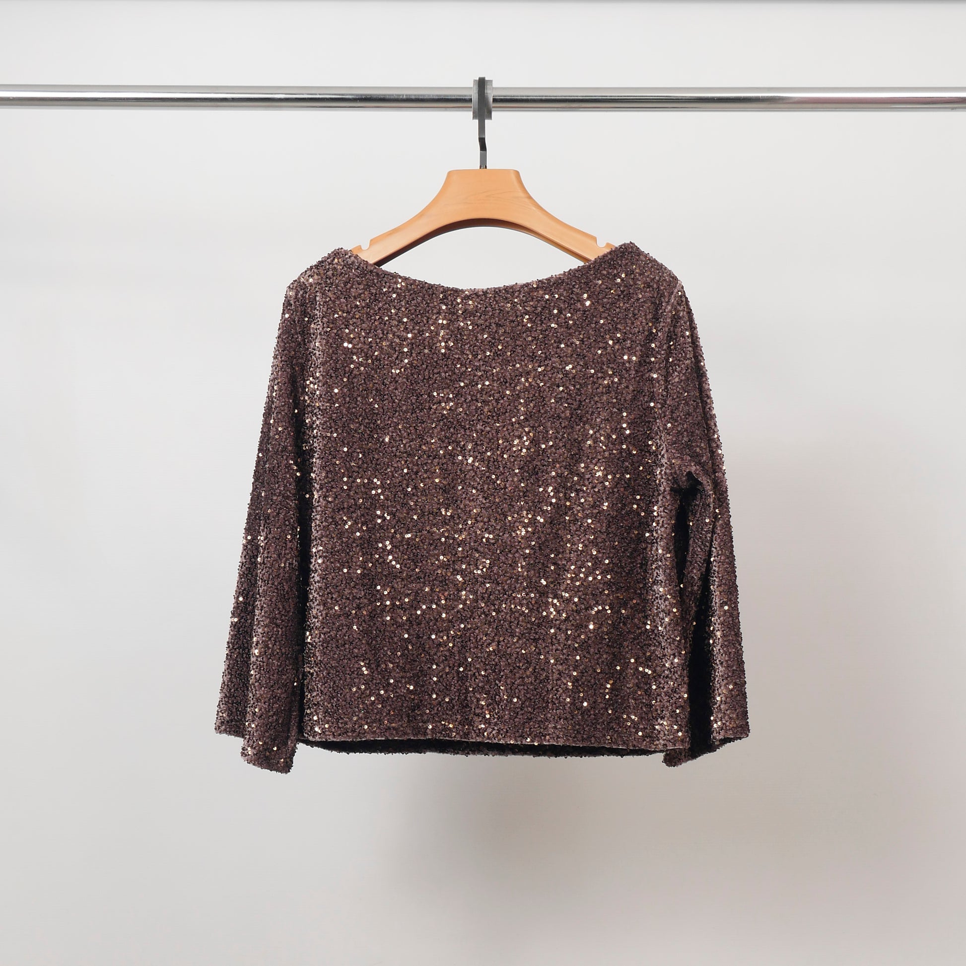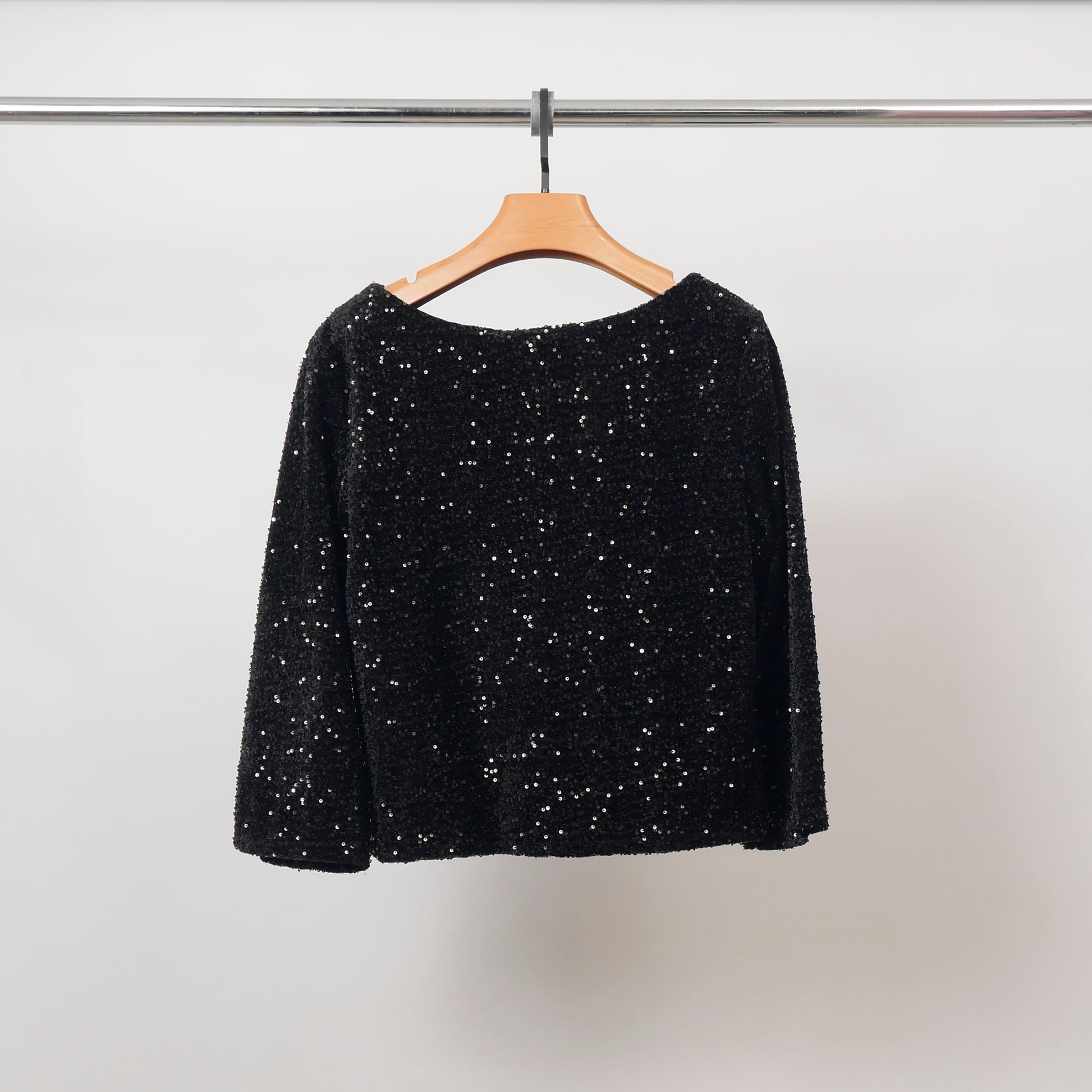 Éblouissez à chaque mouvement avec ce haut à sequins au charme irrésistible. Son design épuré à encolure bateau met en valeur une silhouette droite, soulignée par un tombé fluide et des manches longues pour une élégance discrète mais affirmée. Entièrement brodé de sequins brillants, il capte la lumière avec raffinement, idéal pour les soirées festives ou les occasions spéciales. Sa coupe légèrement ample assure un confort optimal tout en sublimant la silhouette, tandis que la matière souple accompagne les gestes avec légèreté. Associez-le à un pantalon tailleur pour un look chic, ou à un jean brut pour une allure plus décontractée mais toujours sophistiquée.