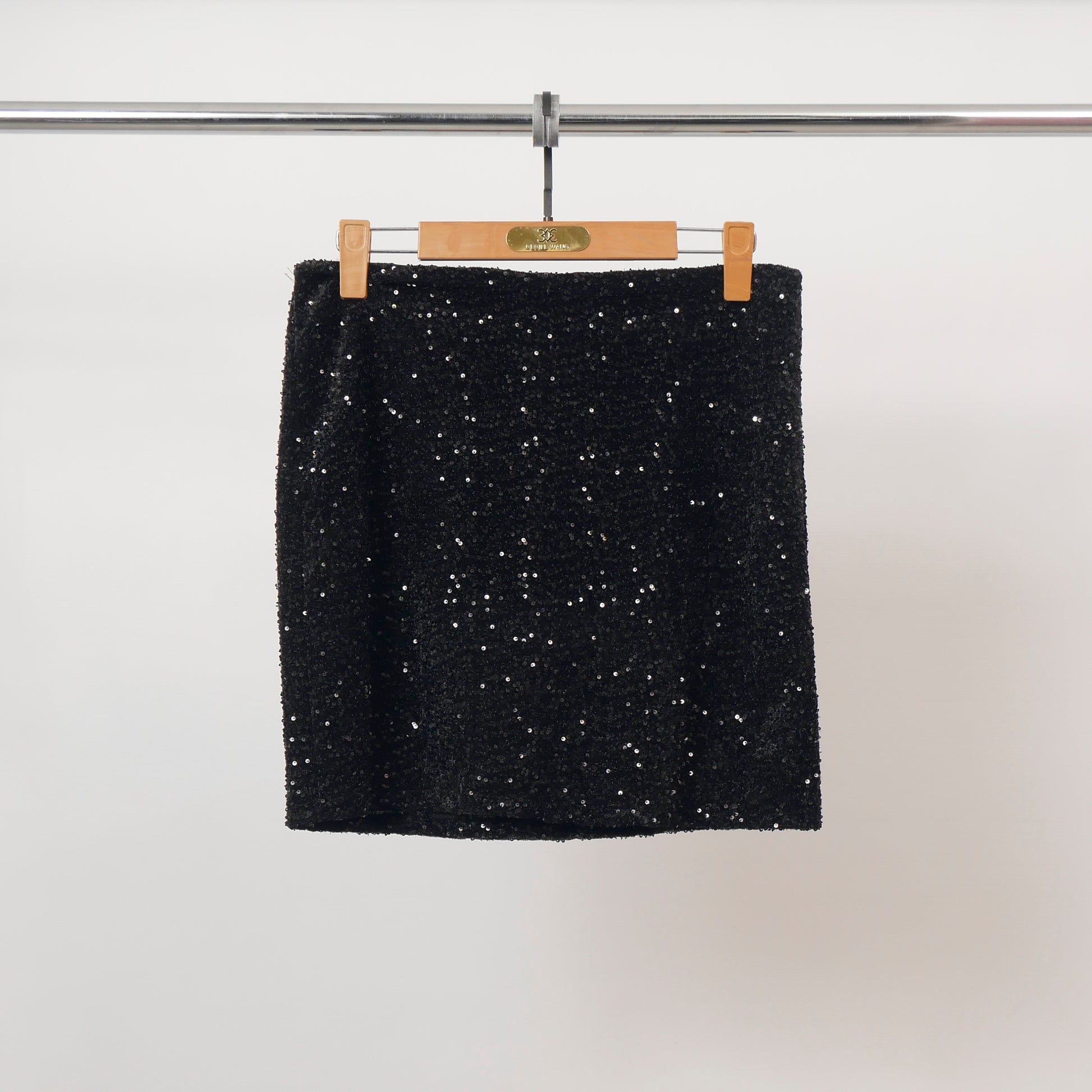 Ajoutez une touche de glamour instantané à votre garde-robe avec cette jupe courte entièrement ornée de sequins. Sa coupe droite et épurée épouse délicatement la silhouette pour un rendu chic et féminin. Brillante sous la lumière, elle attire tous les regards, parfaite pour les fêtes, les soirées ou un look audacieux de jour comme de nuit. Conçue pour allier confort et style, sa taille plate assure un maintien discret sans compromettre l’élégance. Portez-la avec un top en soie ou un pull ajusté selon l’occasion, et complétez le look avec des talons ou des bottines pour un effet sophistiqué garanti.