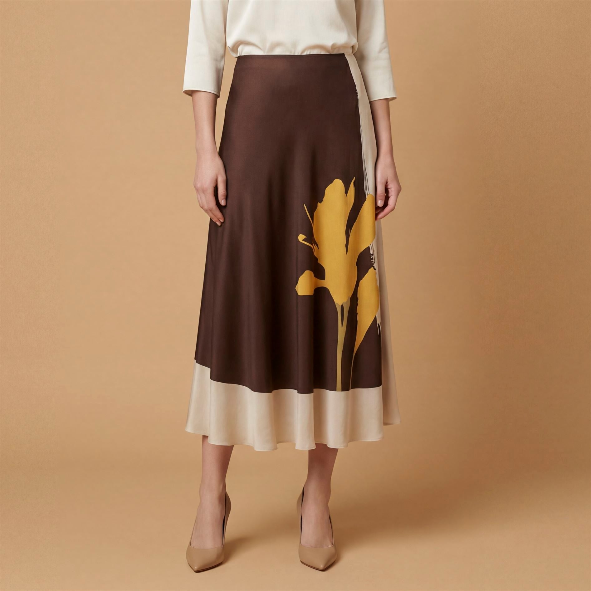 Jupe mi-longue imprimé fleur bicolore – BCL5029VS-5