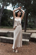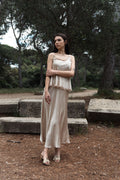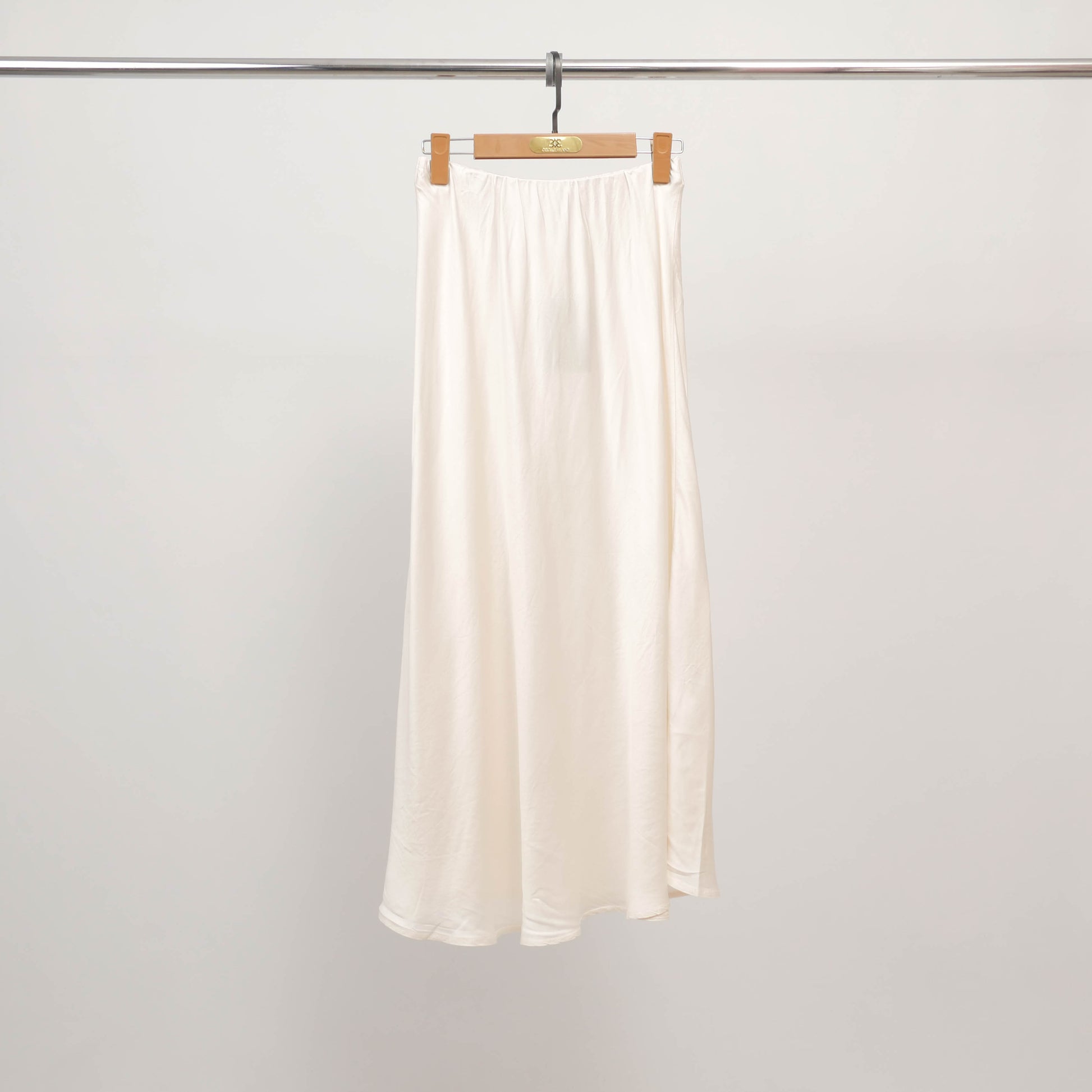Fluide, lumineuse et intemporelle, cette jupe midi satinée sublime la silhouette avec simplicité et élégance.