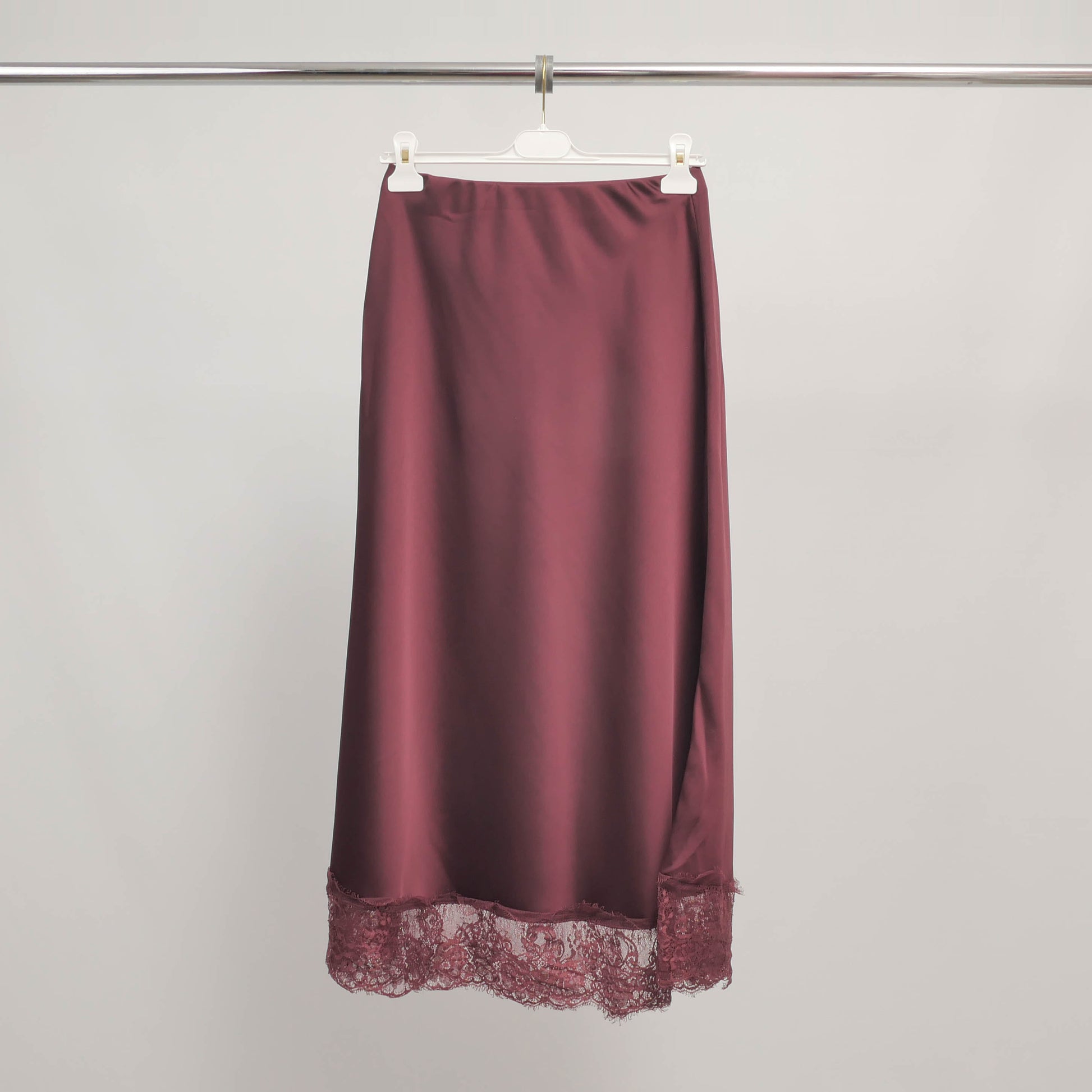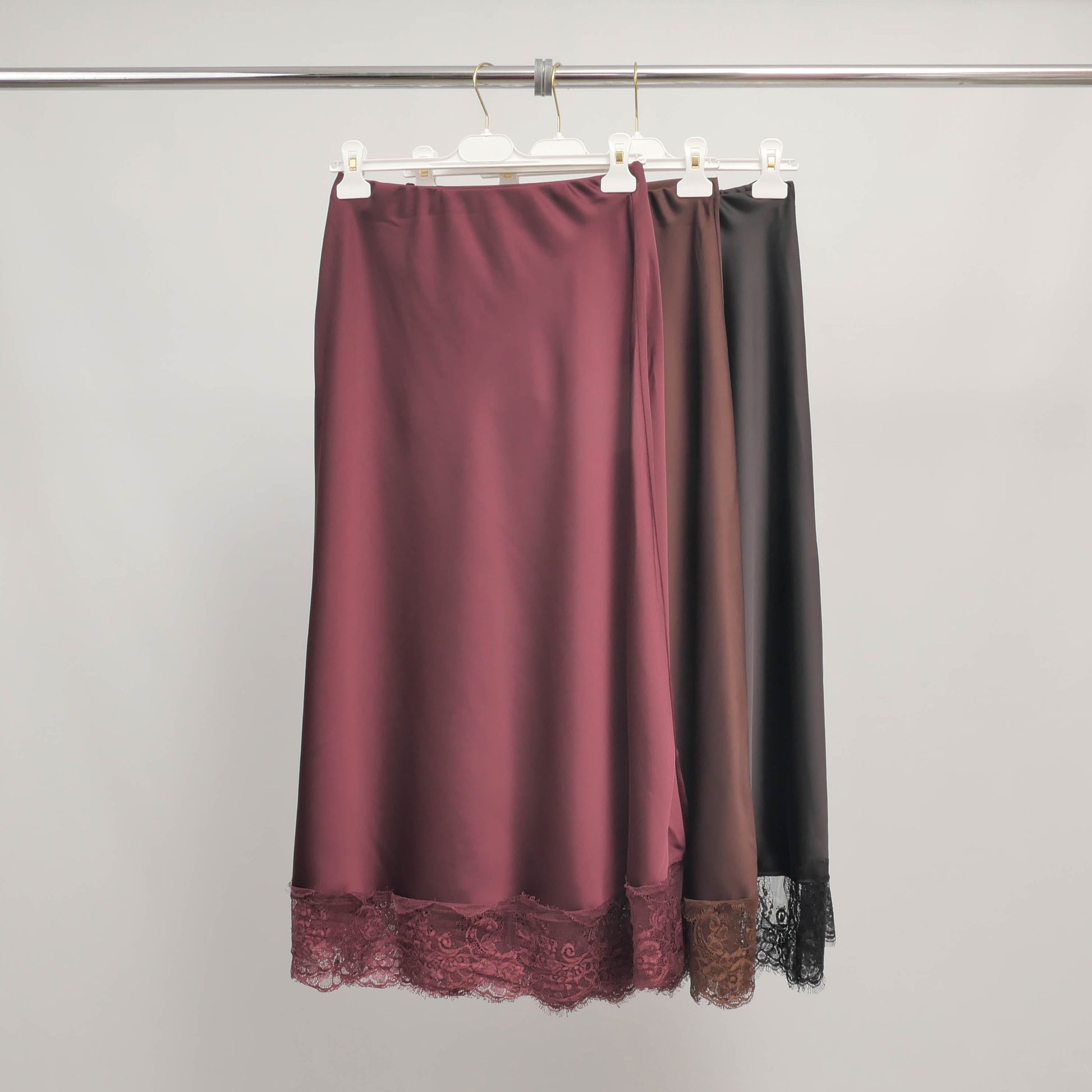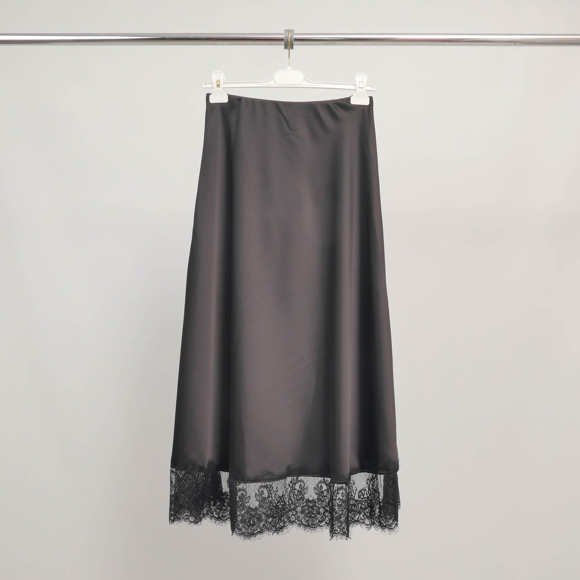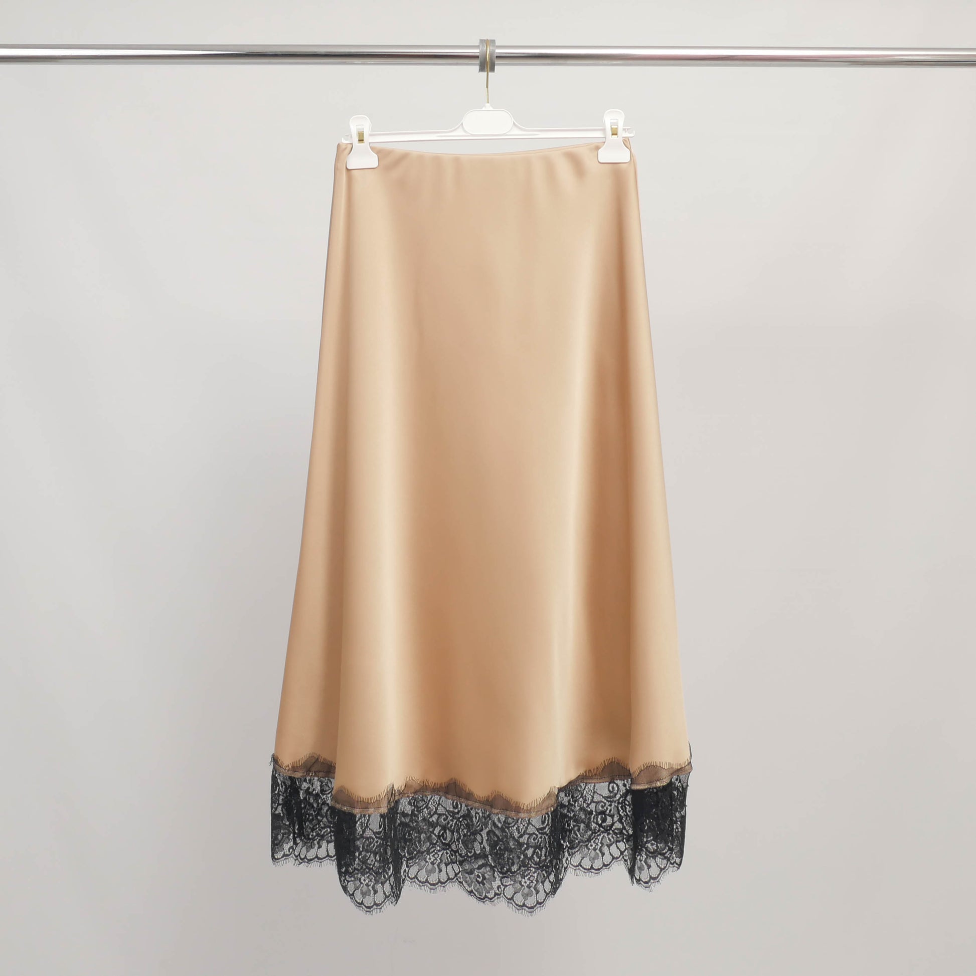 Jupe satinée longueur midi avec dentelle – BCL5029VS-2