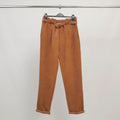 Ce pantalon à taille haute adopte une coupe paperbag élégante, sublimée par une ceinture fine ton sur ton à boucle dorée. Sa matière effet velours apporte douceur et texture, tandis que sa coupe droite légèrement fuselée allonge la silhouette. Les pinces à l’avant et les poches latérales renforcent son style urbain-chic.