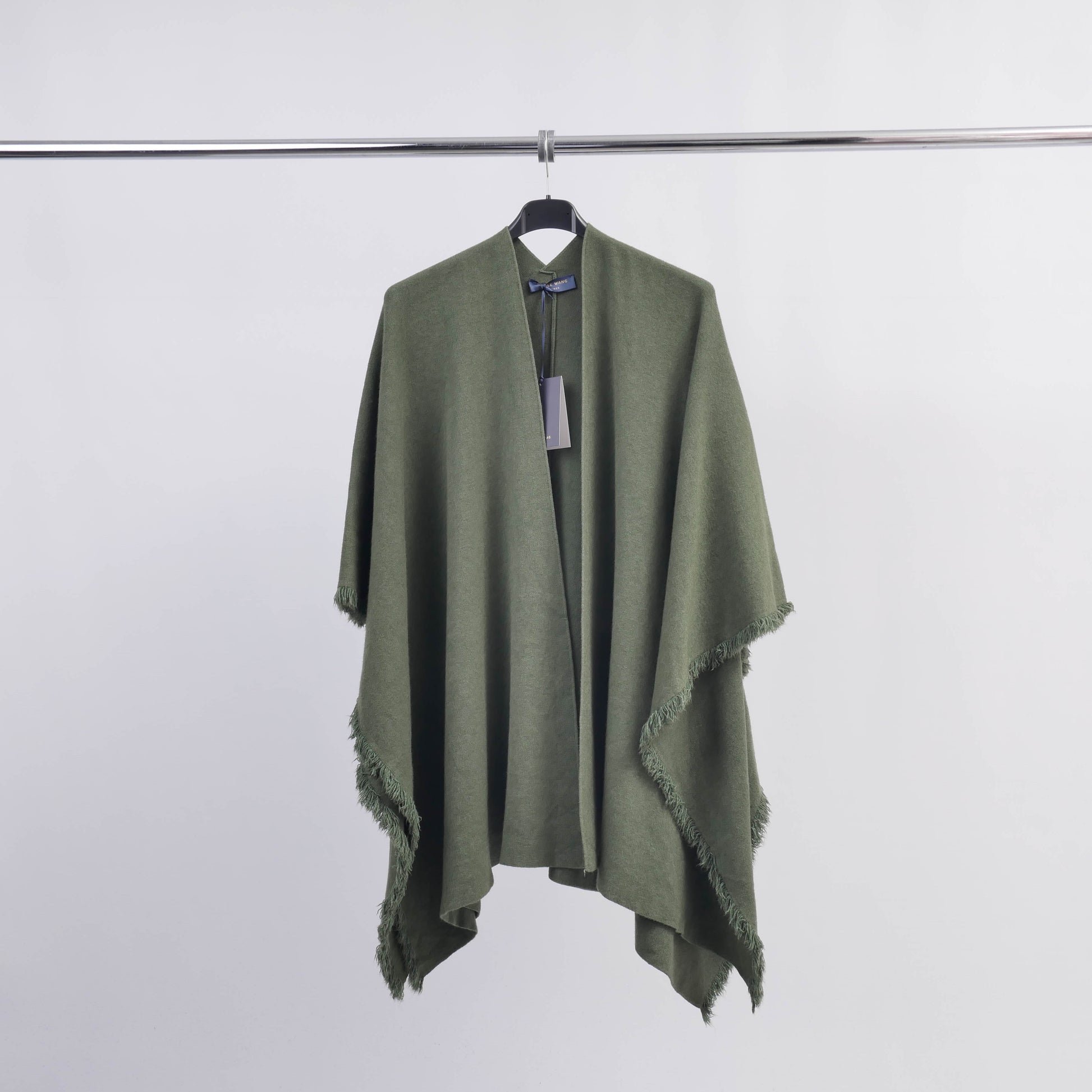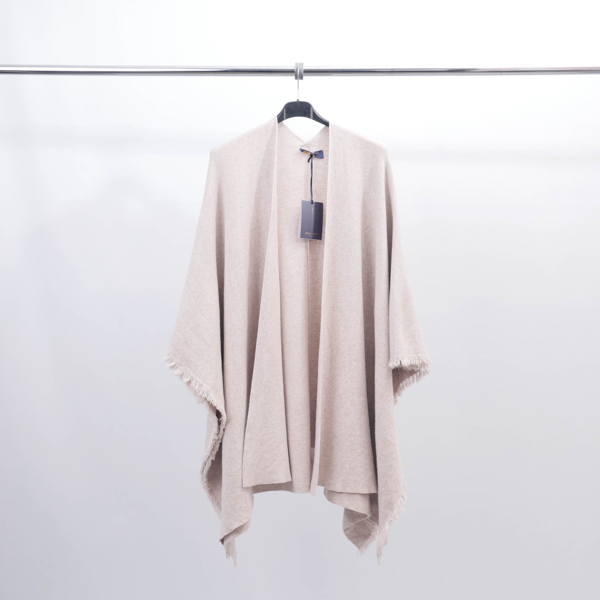 Ce poncho ample et sans manches séduit par sa coupe fluide, ses bords frangés délicats et son tombé souple qui enveloppe la silhouette avec douceur. Ouvert sur le devant, il se superpose facilement à toutes vos tenues, du look casual au style plus habillé.