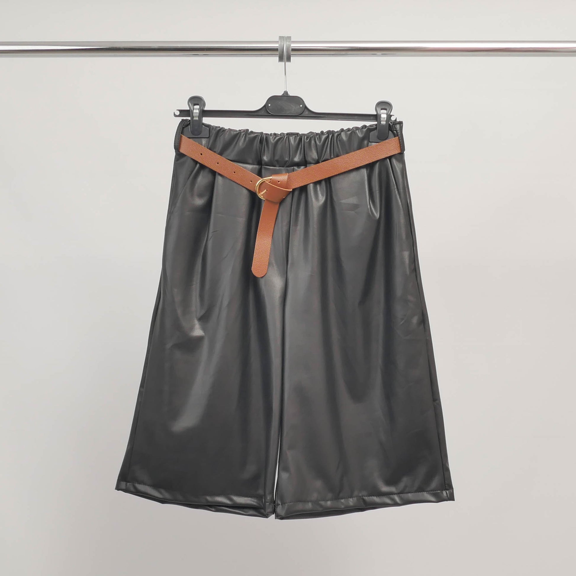 Short culotte effet cuir noir avec ceinture contrastante – TDM52325-2