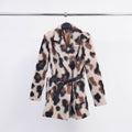 Profitez de l'hiver avec style grâce à ce manteau à motif léopard. Son design ceinturé mettra en valeur votre silhouette tandis que sa matière douce et confortable vous gardera au chaud. Ajoutez une touche sauvage à votre garde-robe avec ce manteau tendance.