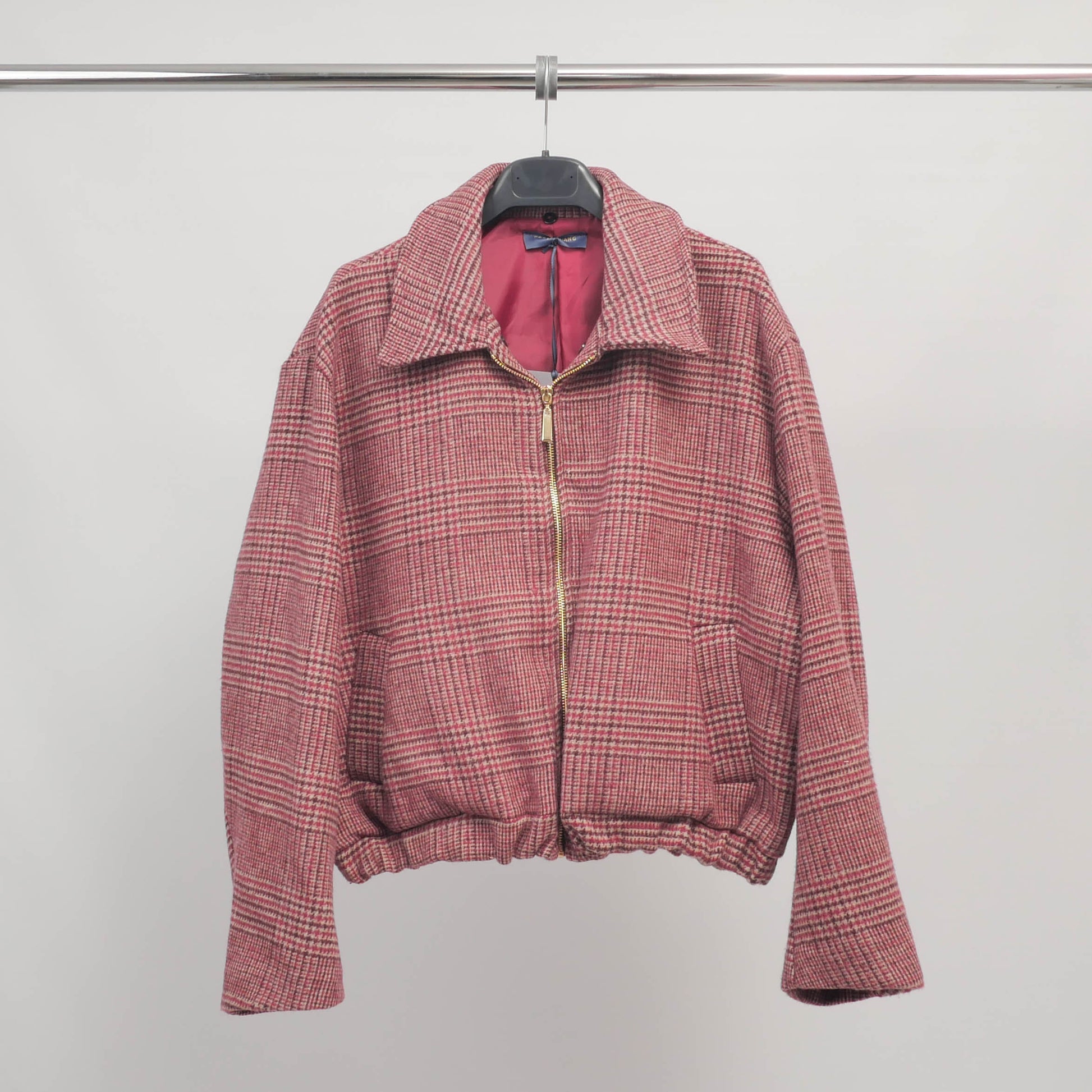 Une pièce forte et raffinée pour affirmer votre style en douceur. Cette veste à carreaux dans les tons de rose et bordeaux séduit par son motif prince-de-galles revisité et son col en fausse fourrure chocolat, amovible selon l’envie. Sa fermeture zippée dorée, ses poches plaquées et sa taille élastiquée créent un équilibre parfait entre élégance rétro et confort moderne.