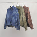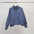 Un souffle rétro et décontracté. Cette veste ample à pois revisite l’esprit vintage avec une coupe moderne et un col montant structuré.
