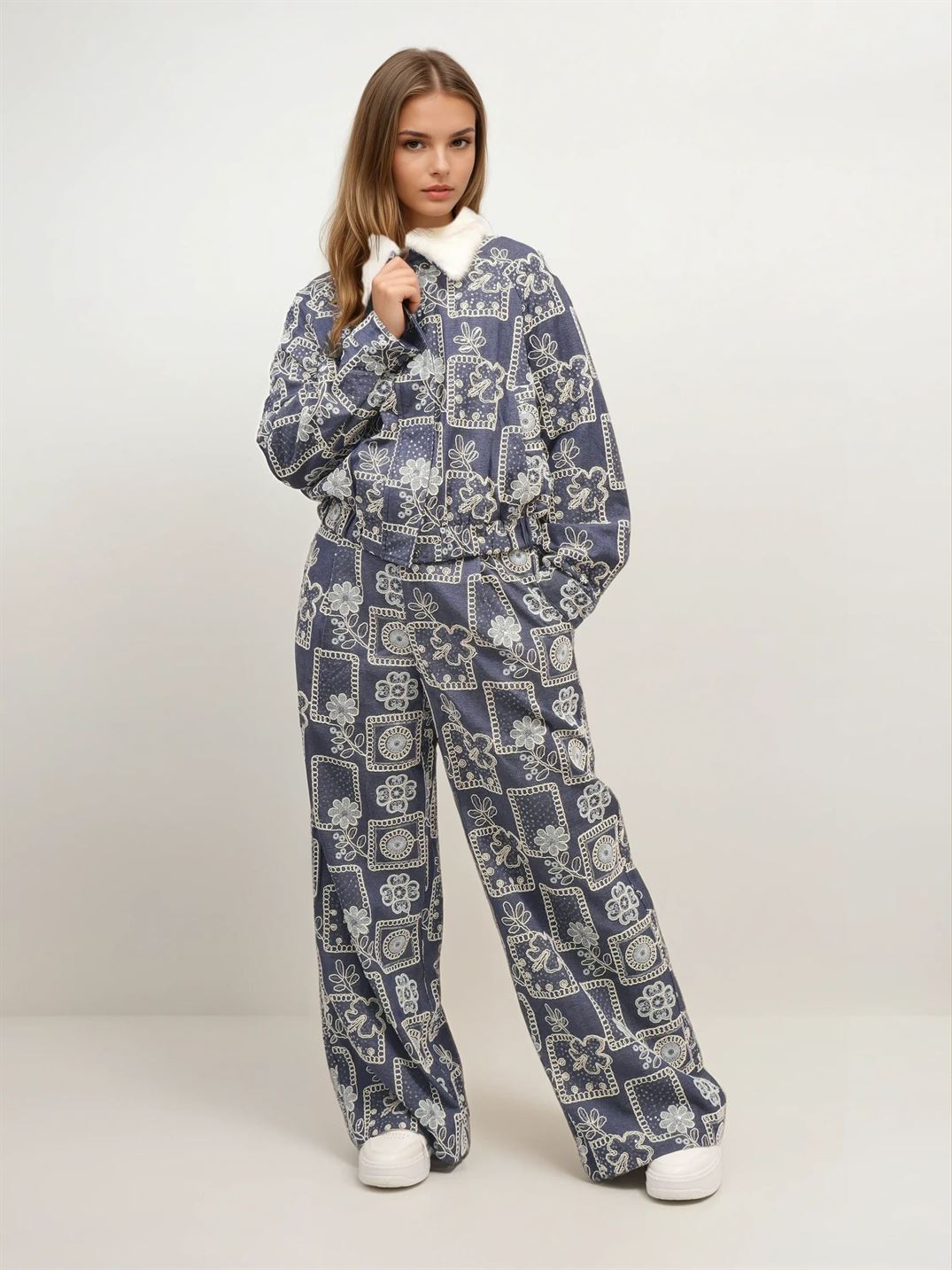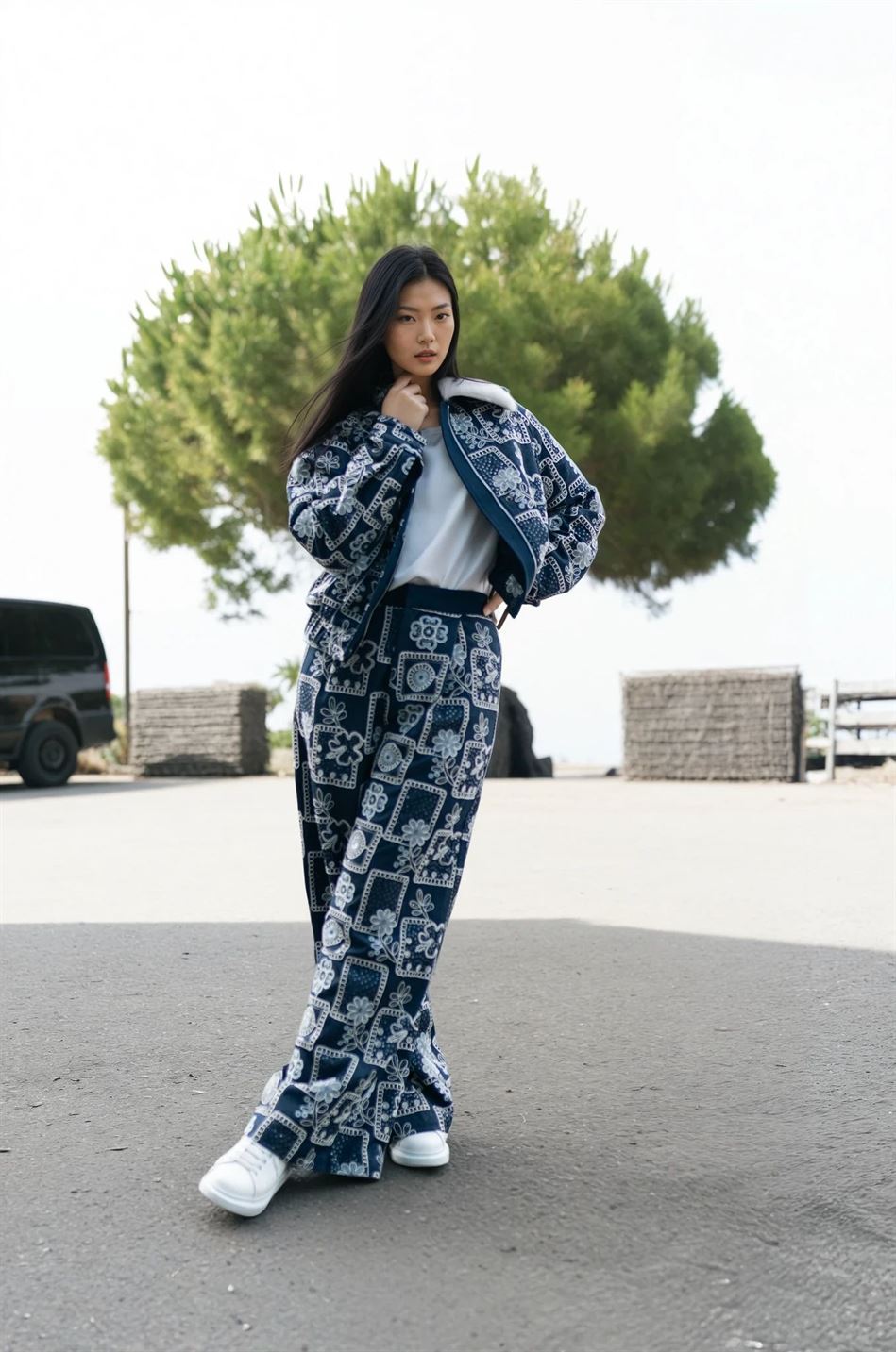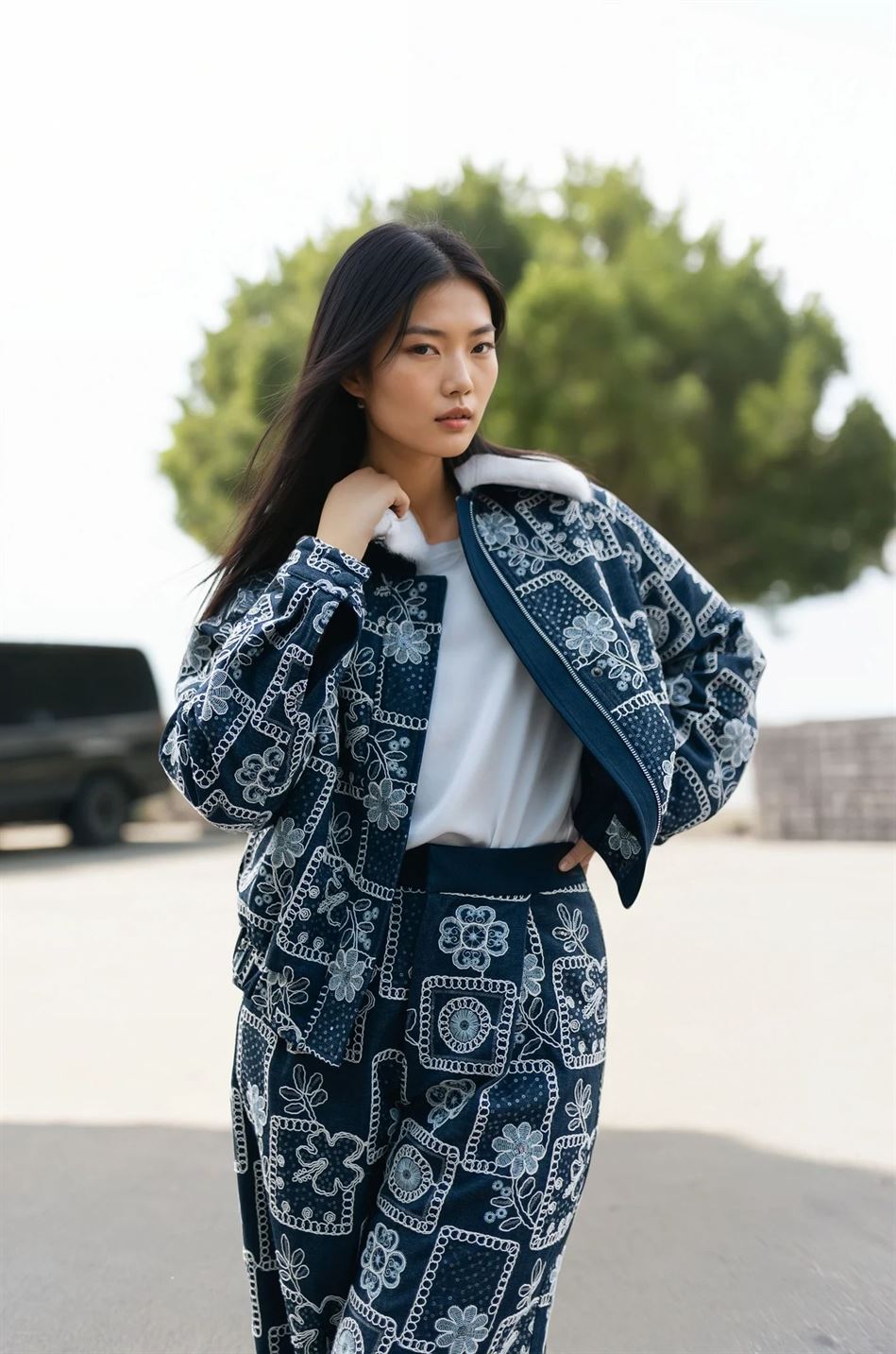 Un bomber au style affirmé qui revisite l’imprimé floral dans une version graphique et moderne. Confectionnée dans une matière texturée avec broderies et sequins délicats, cette veste se distingue par son jeu de motifs patchwork et son col en fausse fourrure blanche qui apporte contraste et chaleur. Sa coupe légèrement oversize assure confort et allure contemporaine, idéale pour un look urbain. Parfaite portée avec le pantalon assorti pour un ensemble audacieux, ou en pièce forte sur un jean et un t-shirt blanc.