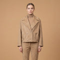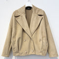 Une pièce incontournable pour la mi-saison, à la fois chic et facile à porter. Cette veste en suédine douce séduit par sa texture veloutée et son tombé structuré. Son col tailleur oversize lui confère une allure affirmée, tandis que sa fermeture croisée à double boutonnage apporte une touche de raffinement classique.