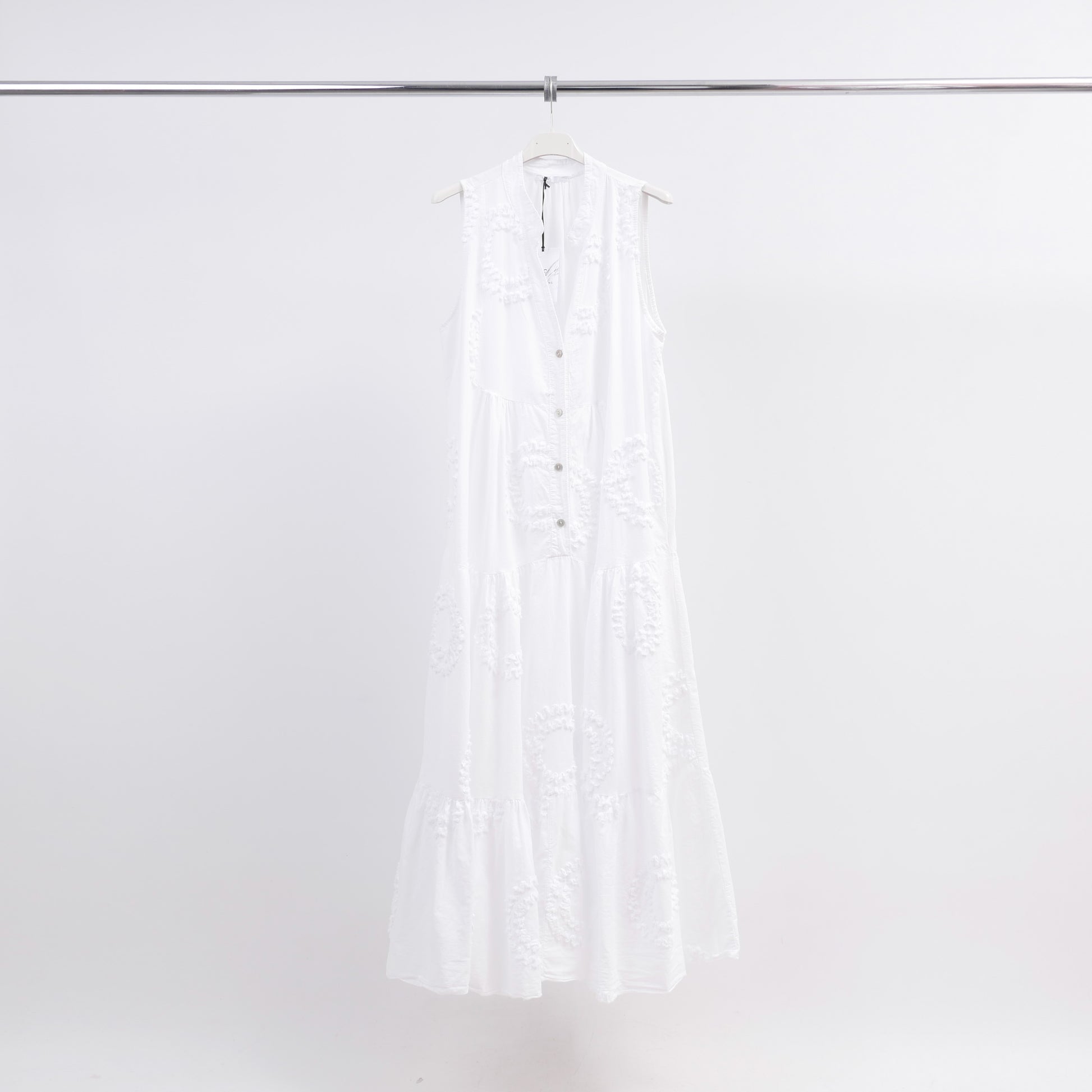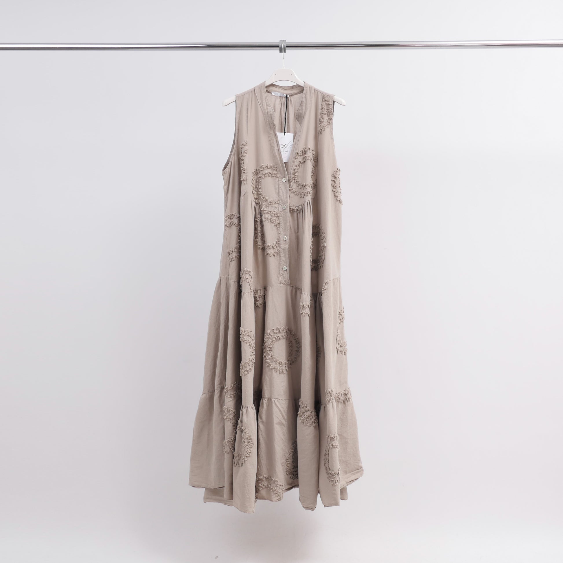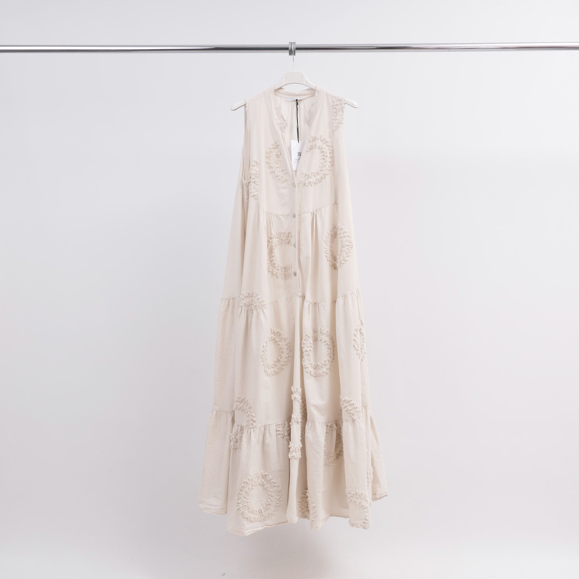 Cette robe longue sans manche brodée de cercles en coton est à la fois élégante et confortable. Son design unique est parfait pour toutes occasions. Profitez de la qualité et de la beauté de cette robe pour un look intemporel et sophistiqué.