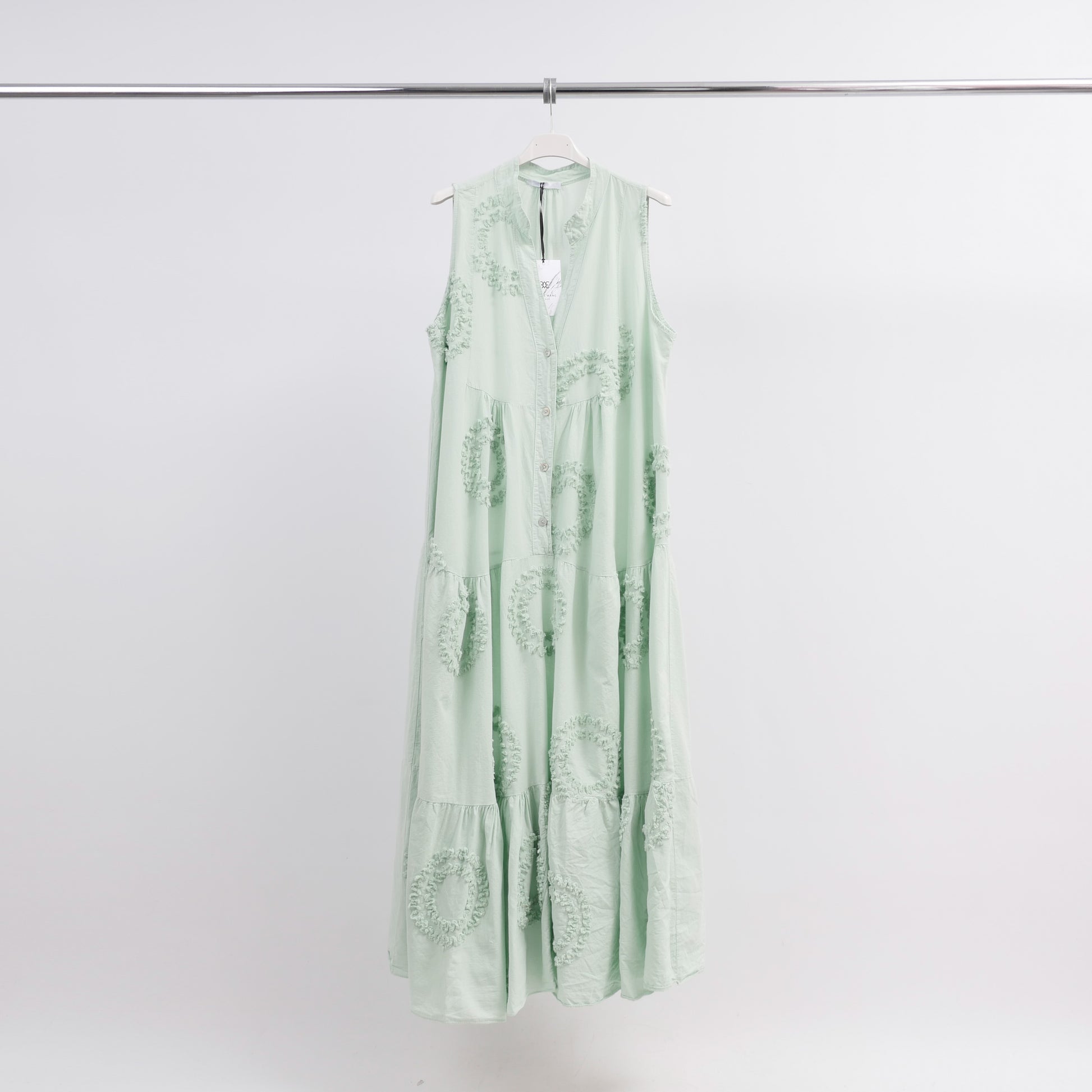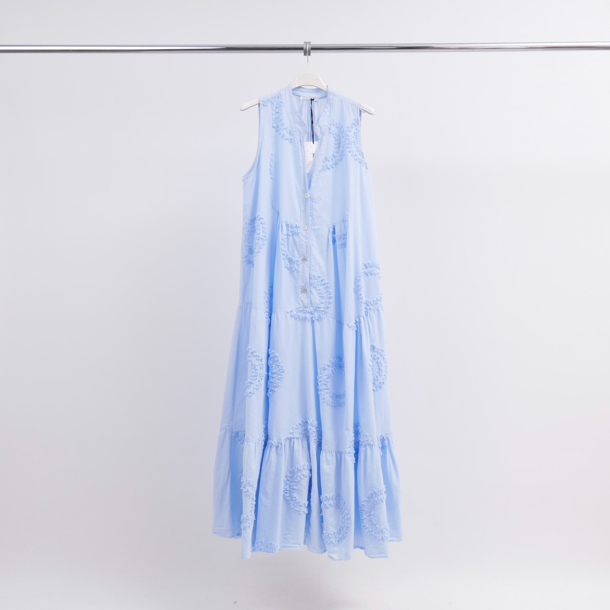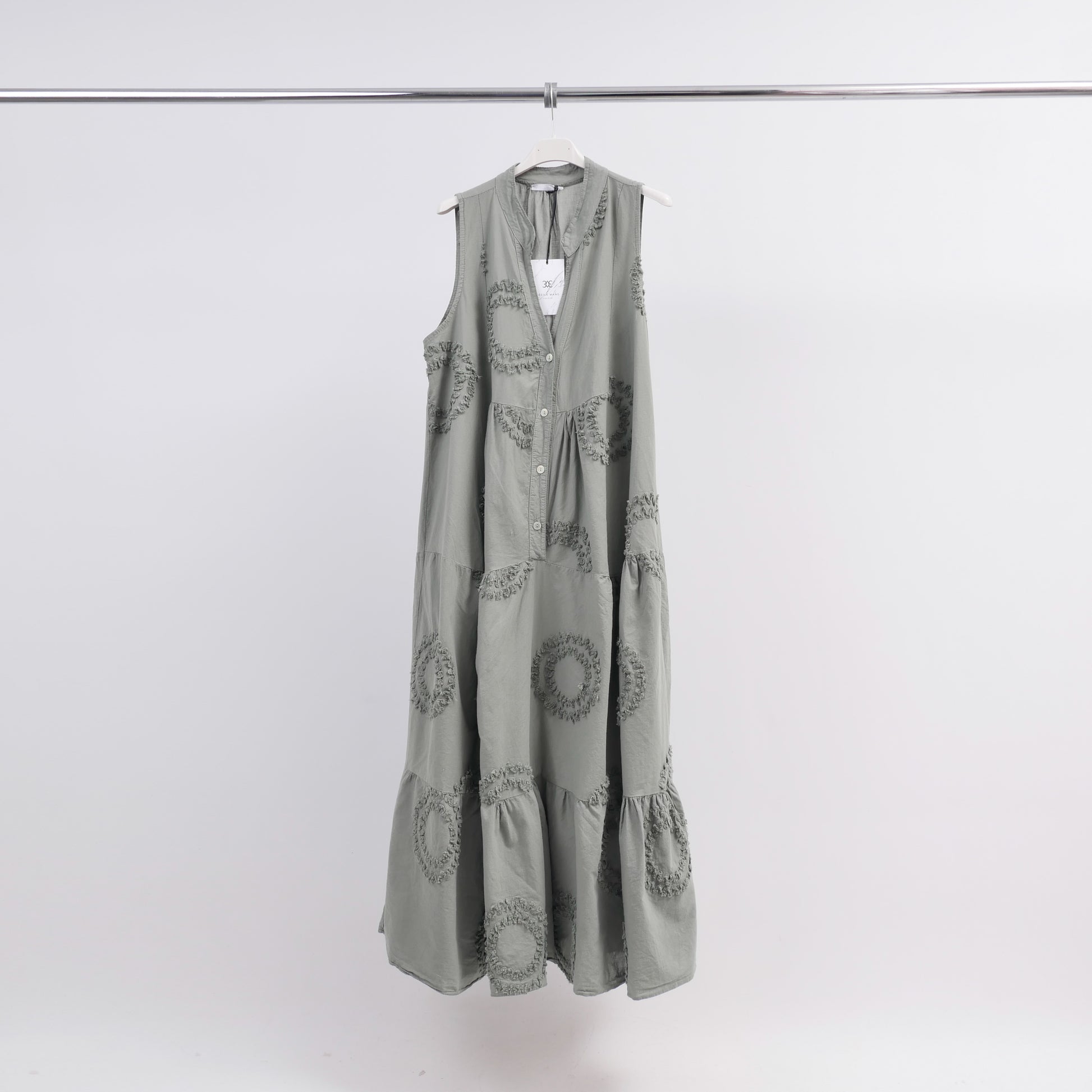 Cette robe longue sans manche brodée de cercles en coton est à la fois élégante et confortable. Son design unique est parfait pour toutes occasions. Profitez de la qualité et de la beauté de cette robe pour un look intemporel et sophistiqué.