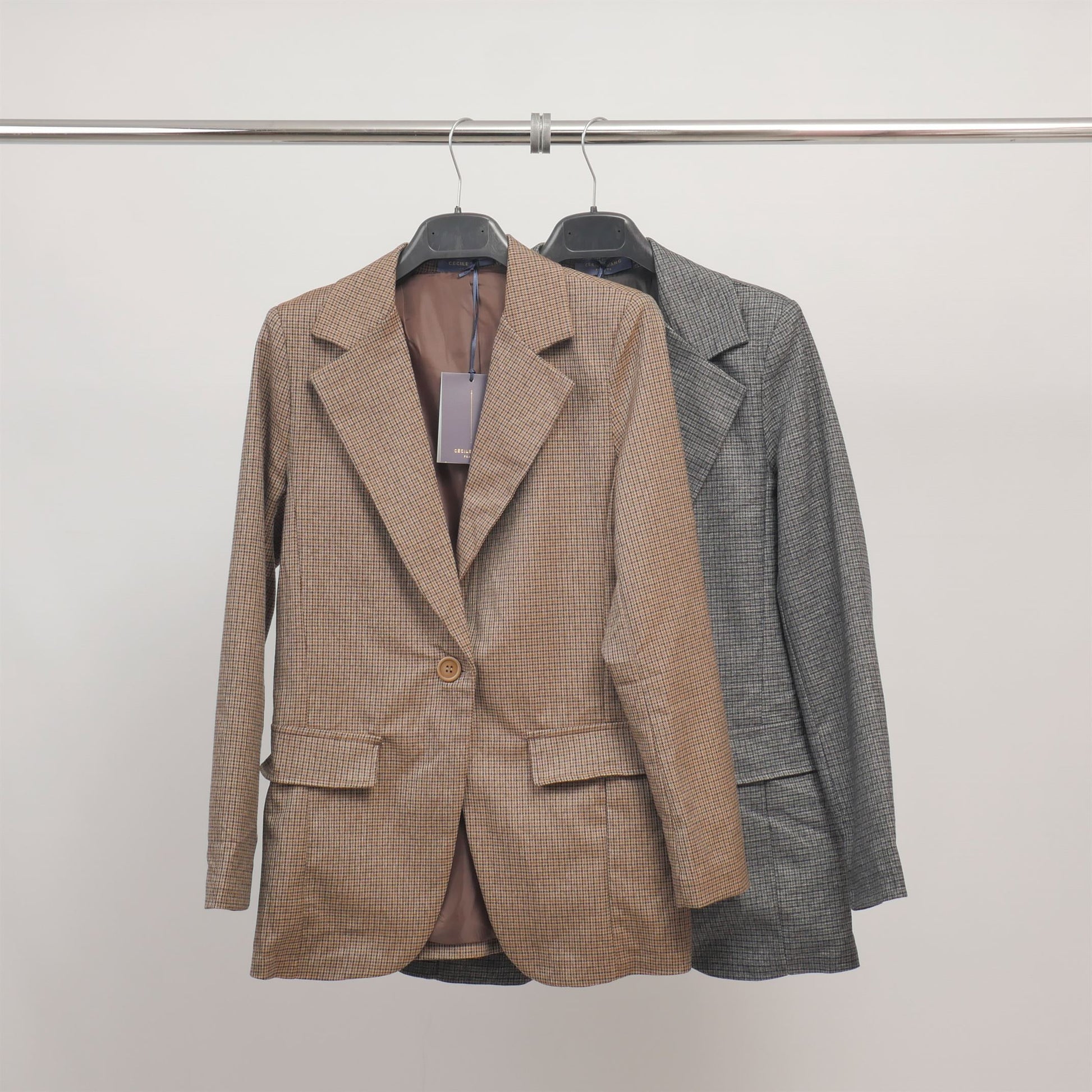 Blazer à carreaux classique en matière stretch TDM55320-8